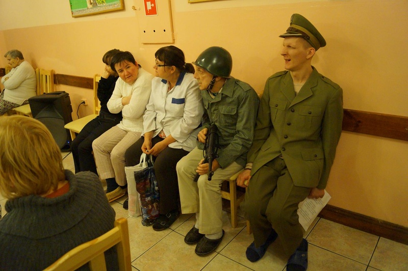 Druga część akademii była poświęcona 11. listopada. Wspólnie obejrzeliśmy film, nakręcony przez naszego bardzo uzdolnionego terapeutę - p. Tomasza. Aktorami w tym filmie byli nasi mieszkańcy. Panowie też recytowali wiersze patriotyczne.